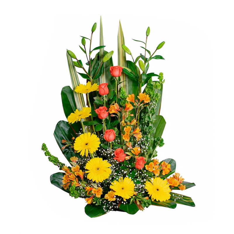 Arreglo que combina Gerberas, Astromelias, Rosas y Lilis; ‘Agradecimiento’ es colorido y expresivo, perfecto para mostrar gratitud. DiseƱo con presencia pensado para ceremonias o entregas formales.