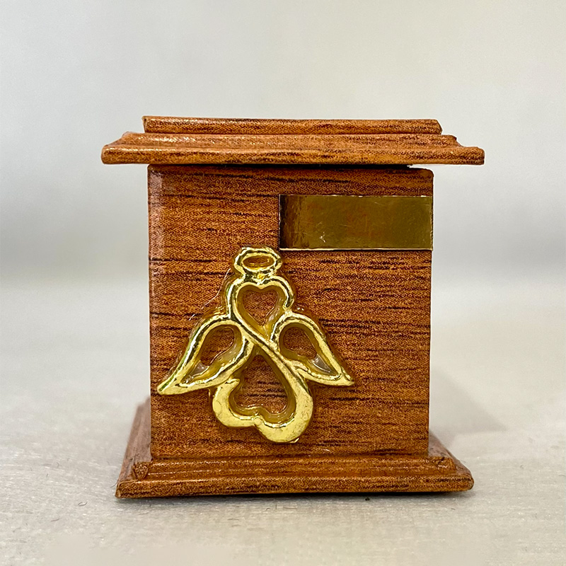 Urna funeraria para compartir cenizas con seres queridos; ‘Angelito Dorado’ ofrece una opción con diseƱo simbólico y acabado decorativo para acompaƱar el recuerdo. Producto de uso funerario con presentación individual.