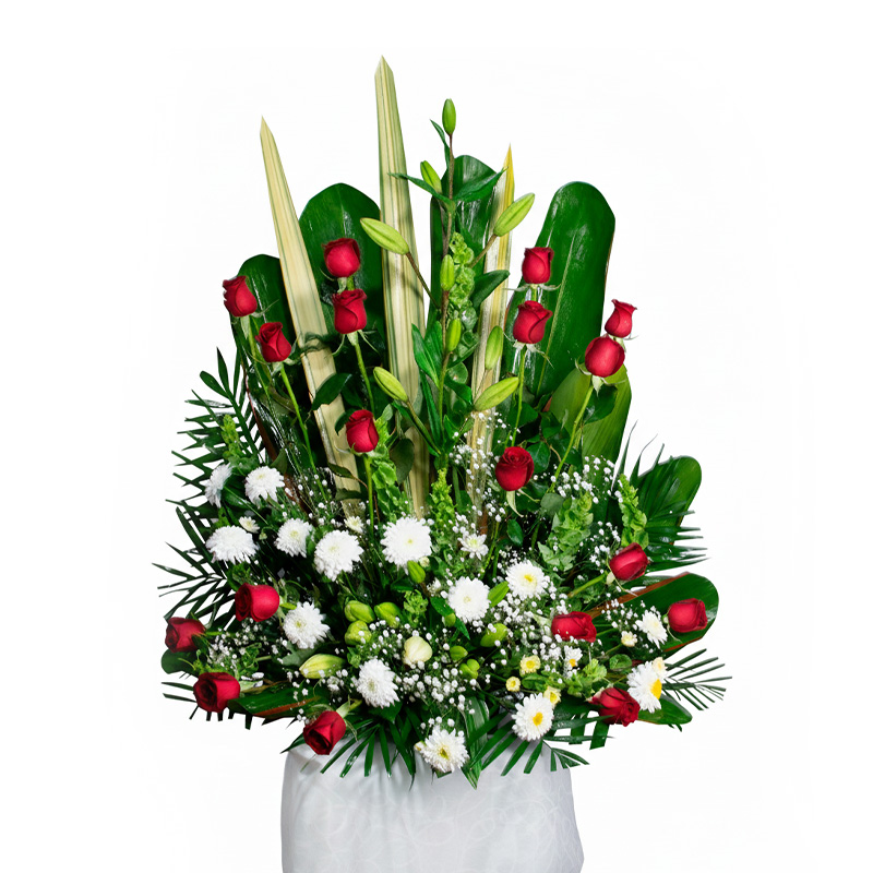 Adorno de rosas rojas para expresar sentimientos sin palabras; ‘Demostración de Amor’ es un arreglo elegante que destaca por su intensidad y presencia. Adecuado para ocasiones solemnes o románticas.