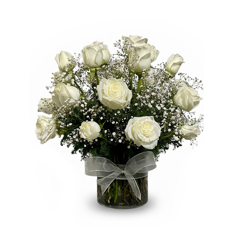 Envía un elegante arreglo de rosas blancas frescas para expresar condolencias; ‘Paz en Cristal’ es sobrio y pensado para transmitir calma. Tamaño compacto y presentación en cristal, ideal para espacios reducidos.